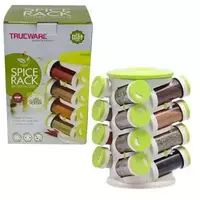 Набір для спецій 16 в 1 (SPICE RACK sixsteen in one) Такий набір не залишить байдужою жодну господиню, яка любить готувати й хоче, щоб усе було під рукою. Набір містить 16 пластикових контейнерів для найрізноманітніших спецій. Усі різновиди перців, трави та інші приправи. Стійка виготовлена з харчового пластику, легко обертається. Кожен контейнер просто виймається, миється й наповнюється. У самій підставці є спеціальне заглиблення для столового приладдя. Контейнери можна мити в посудомийній машині. Пластик не можна мити абразивними мийними засобами або жорсткими шкребками. Досить протерти м'якою губкою й промити проточною водою. SPICE RACK sixsteen in one має привабливий, невимушений дизайн і буде чудовим доповненням декору для будь-якої кухні. Габарити: Розмір стійки: 25*17см Розмір пляшечки для спецій 10*5см.