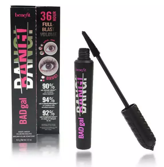 Найкраща туш для вій Benefit Bang має 36-годинну дію і надає вій чудовий об'єм без обтяження. У складі її формули – аерочастинки, одні з найлегших відомих науці матеріалів, які використовуються в косметології. Інноваційна чорна туш BANGI дуже легко наноситься і дарує вій максимальний, запаморочливий об'єм від коренів і до самих кінчиків.